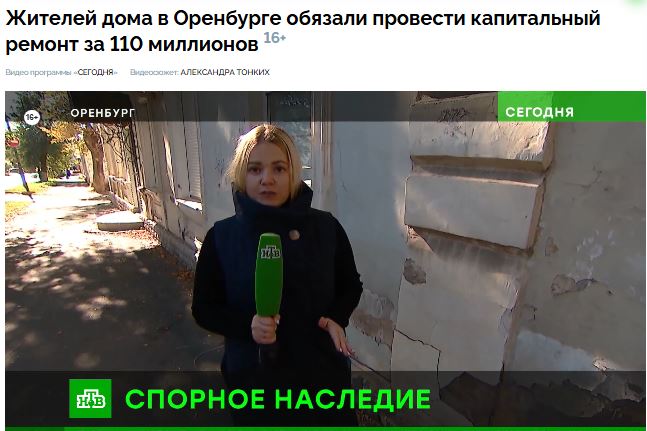 Два судебных дела по объектам культурного наследия попали в федеральный эфир телеканала НТВ. В программе «Сегодня» журналисты рассказали о ситуации, которая сегодня складывается в историческом центре Оренбурга. Инспекция государственной охраны объектов культурного наследия направила в суд иски, требуя провести ремонтные работы по сохранению исторических памятников. Речь идет об усадьбе Сачкова на переулке Фабричном и усадьбе Шоля на улице Чичерина.