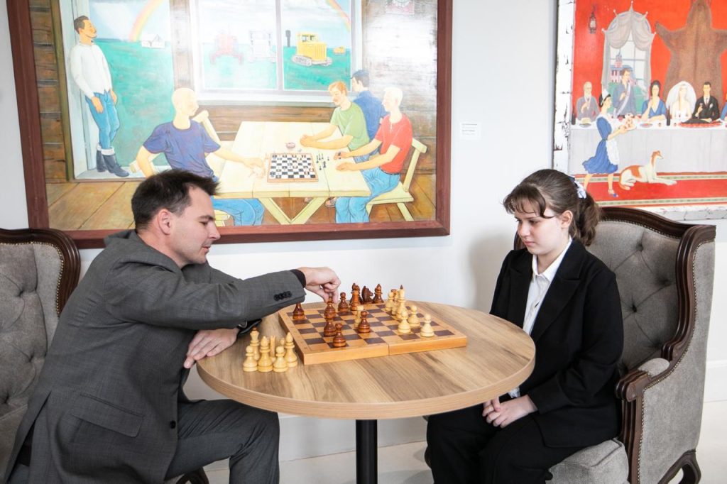 Ответить на вопросы музейщики попросили чемпиона России и мира Анну Шухман. Девушка с удовольствием согласилась проанализировать партию и даже доиграть ее.