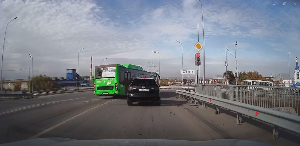Опасный маневр общественного транспорта попал на запись с видеорегистратора, которая была опубликована в соцсетях и привлекла внимание полицейских.