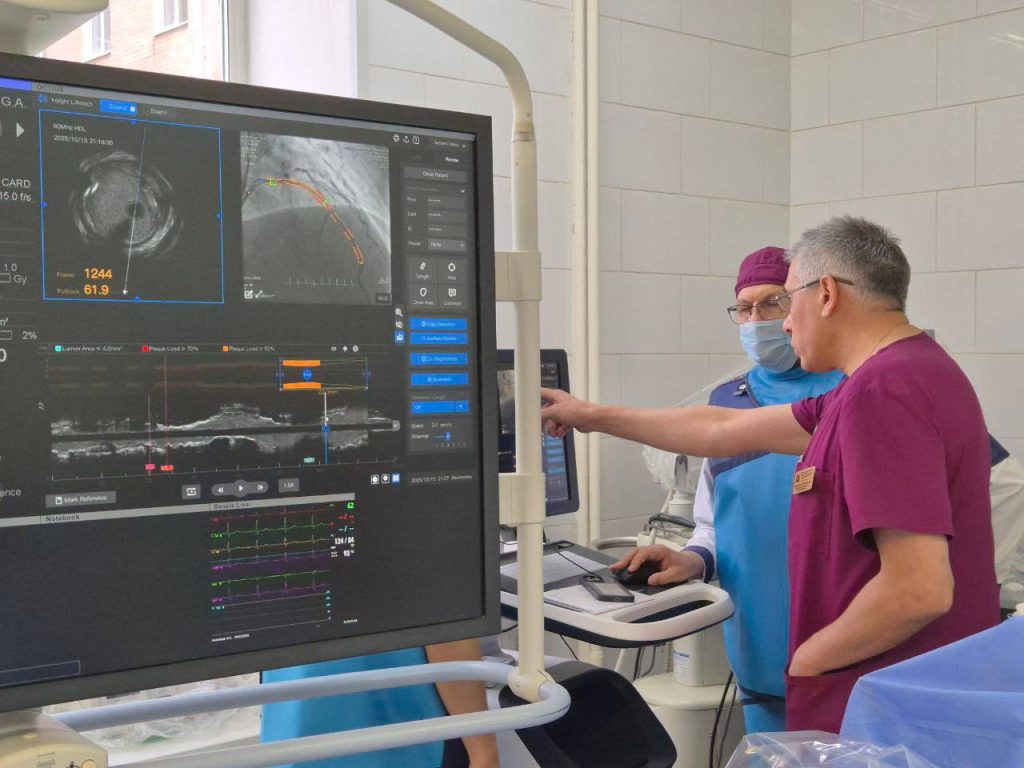 Именно в отделении оренбургской областной больницы на аппарате VivoHeart впервые в России выполнили ко-регистрацию. Это совмещение ангиографического изображения и внутрисосудистого ультразвукового исследования-сканирования.