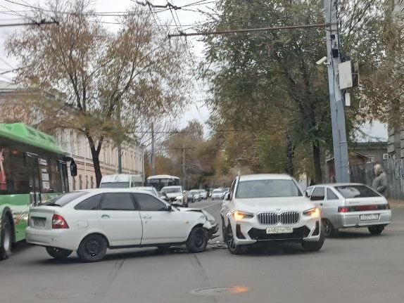 Как рассказали «Оренбург Медиа» очевидцы ДТП, днем 28 октября на пересечении улиц Ленинской и 8 Марта столкнулись «Гранта» и BMW. Отечественный автомобиль въехал в правый борт кроссовера.
