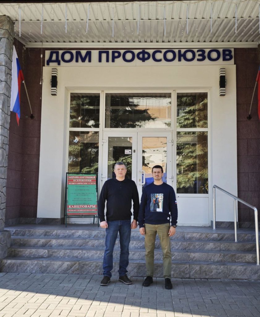 В рамках визита Ярослав Чирков посетил ФП ДНР, где встретился с Председателем ФП ДНР Максимом Паршиным и работниками аппарата профсоюзного объединения Республики. В тёплой и деловой атмосфере стороны обсудили актуальные вопросы профсоюзной работы, поделились накопленным опытом и наметили конкретные пути для дальнейшего сотрудничества. Такое взаимодействие особенно важно в текущих условиях для эффективной защиты прав и интересов трудящихся.