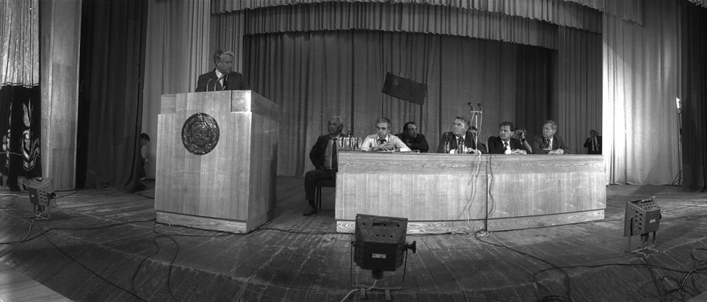 Я же был народный депутат СССР. И когда он прилетел, такая на аэродроме была сцена: стоит председатель облсовета Григорьев, председатель облисполкома Костенюк, ну и я. Ельцин выходит, меня видит – «О! Ты меня приглашал, вот я к тебе и приехал!» — обнимает меня на глазах у всех, после чего наших руководителей был вынужден представлять уже я, — рассказывал он в интервью журналисту Дмитрию Урбановичу.