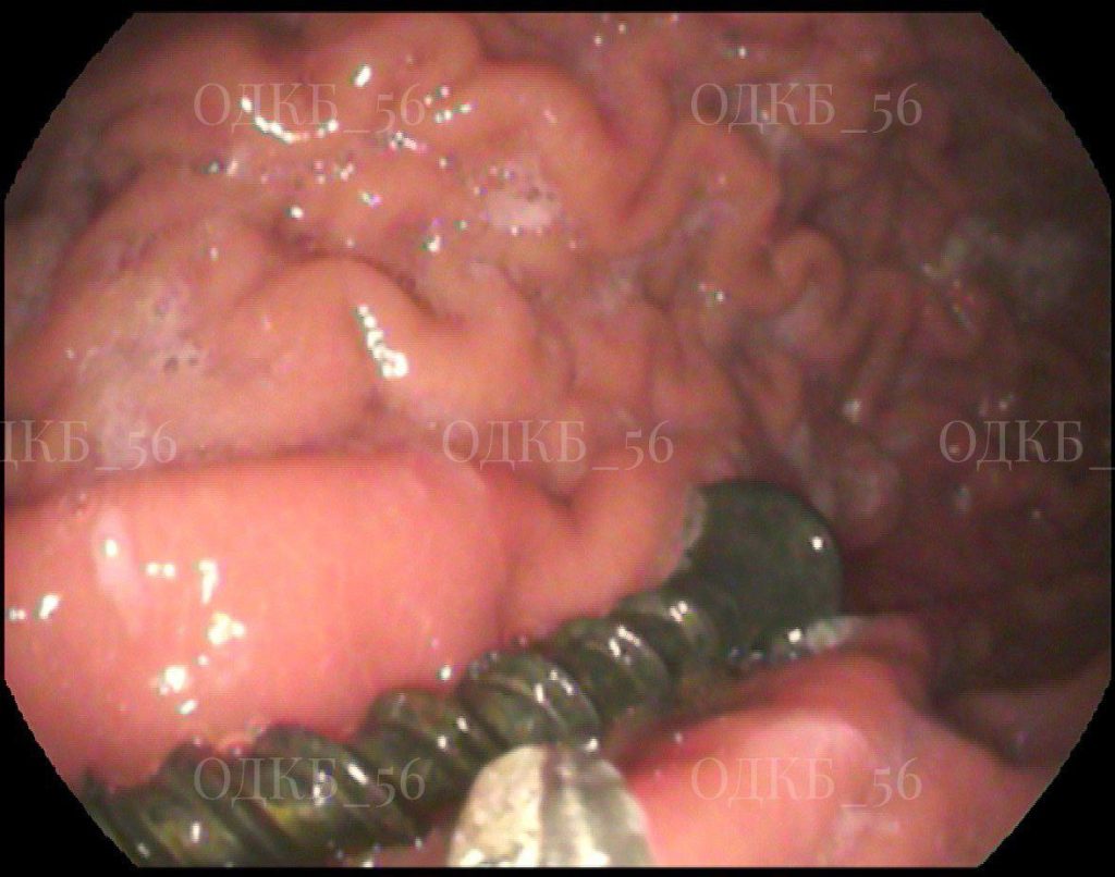 Обследование подтвердило опасения родителей: рентгенография показала наличие инородного тела в области желудка. В экстренном порядке команда специалистов провела эндоскопию верхних отделов ЖКТ под общим обезболиванием.