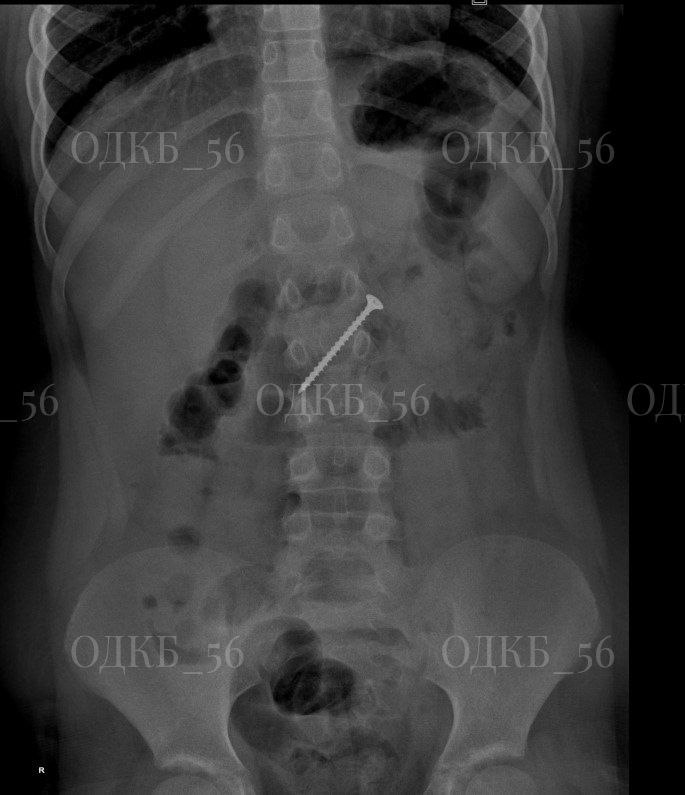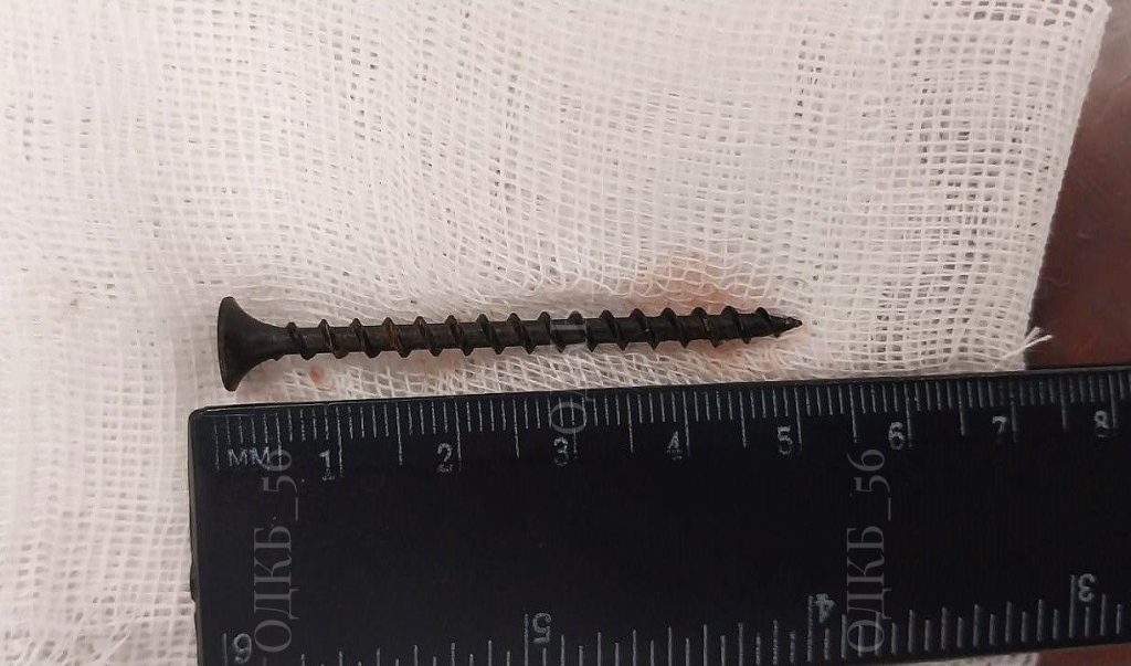 Во время операции выяснилось, что саморез длиной около 5 см мигрировал в двенадцатиперстную кишку, что создавало прямую угрозу жизни ребенка. Был риск развития кишечной непроходимости или перфорации стенки кишки. Врачам удалось извлечь опасный предмет. В настоящее время маленький пациент был выписан домой в удовлетворительном состоянии.