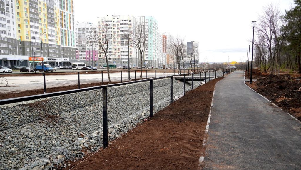 В 16‑м микрорайоне Оренбурга продолжается создание нового городского парка. Пространство, расположенное между улицей Братьев Хусаиновых, проездом Северным и Загородным шоссе, постепенно преображается в современную рекреационную зону, которая станет одним из крупнейших общественных мест отдыха в городе.