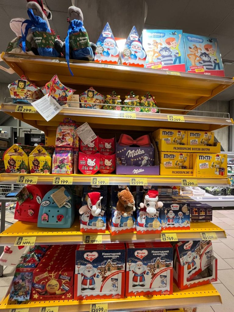 В магазины завезли наборы игрушек и искусственные елки. Там же продают наборы новогодних подарков и элементы оформления для помещений.