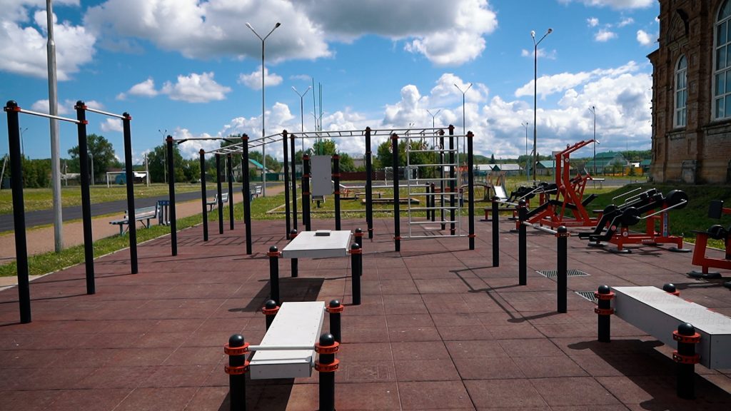 Новая многофункциональная площадка для сдачи нормативов ГТО, оснащённая разноуровневыми перекладинами, турниками, лавками для пресса, скамьями для наклонов и сектором для прыжков в длину, установлена в районном центре по нацпроекту «Демография» и в рамках федерального проекта «Спорт — норма жизни».