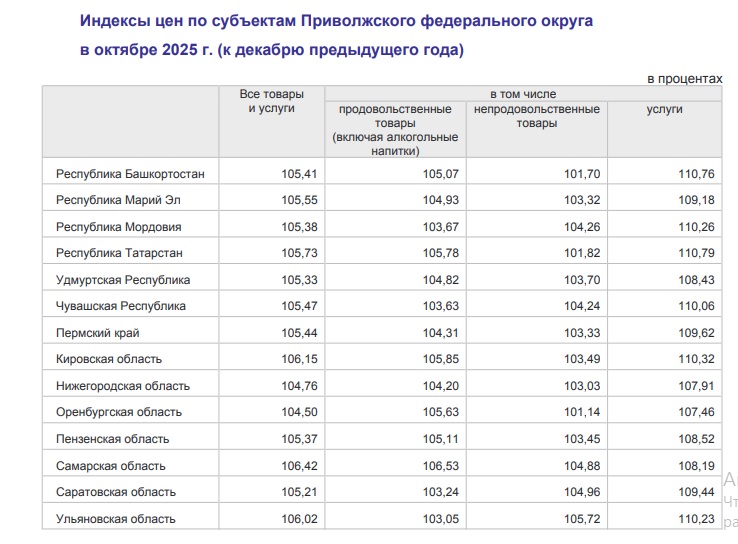 Так, индекс потребительских цен на товары и услуги по Оренбургской области в октябре 2025 года к предыдущему месяцу составил 100,68%. За последние 12 месяцев цены выросли на 8,2%.