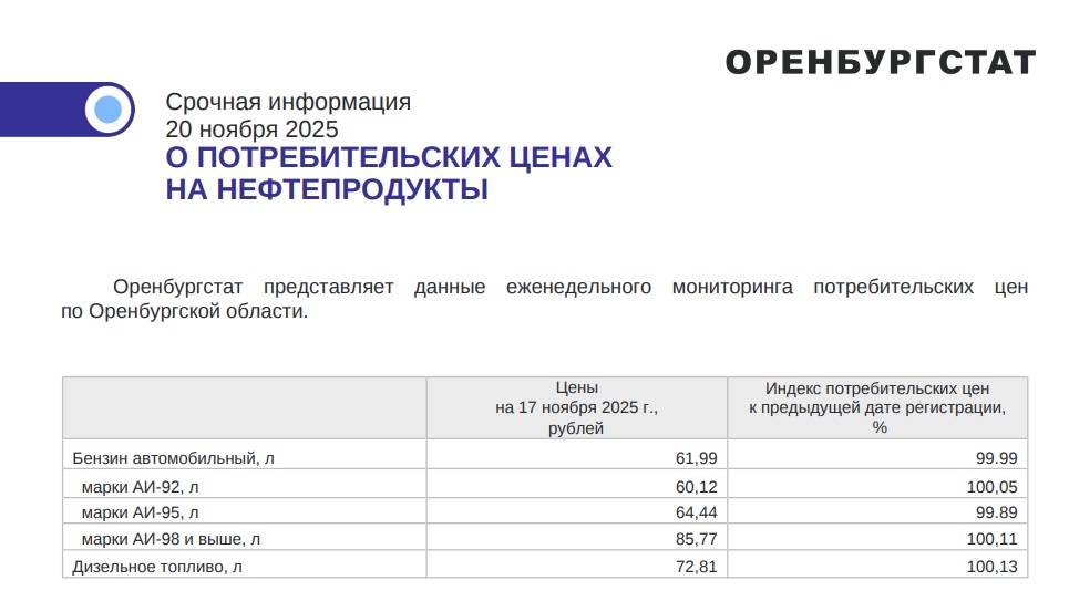 В сводке Оренбургстата указаны средние по области цены. Как правило, на востоке региона бензин дешевле. В то же время на больших заправочных сетях топливо стоит дешевле. При этом цены между сетями АЗС могут отличаться на 7-10 процентов.