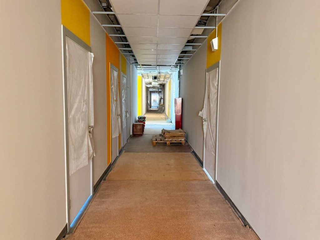 Строители завершили работы в подвале, на втором и четвертом этажах и перешли на третий. На первом этаже сейчас обустраивают новую стойку регистратуры, «фильтр» и гардероб. Кроме того, ведется благоустройство прилегающей территории поликлиники.