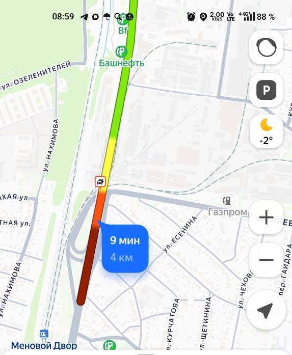 В Оренбурге из-за столкновения несколько автомобилей на путепроводе по улице Донгузской образовалась серьезная пробка.
