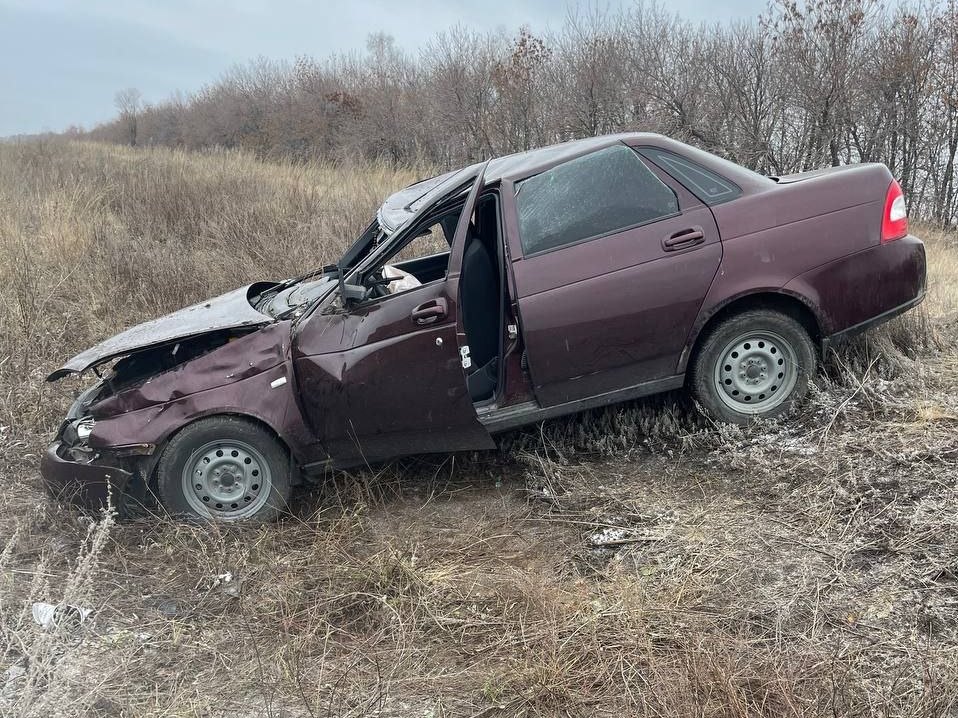 Автомобиль съехал с дороги и опрокинулся в кювет. «Лада» получила серьезные механические повреждения.