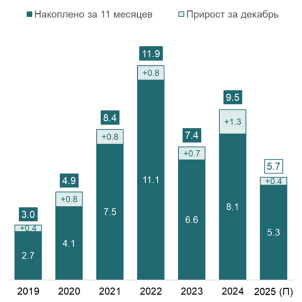 В ближайшие недели темпы роста индекса потребительских цен временно ускорятся в силу сезонного фактора, эффекта от повышения НДС и технических аспектов пересмотра весов в корзине Росстата. Однако уже ко второму кварталу 2026 года месячные темпы инфляции должны вернуться к целевым ориентирам.