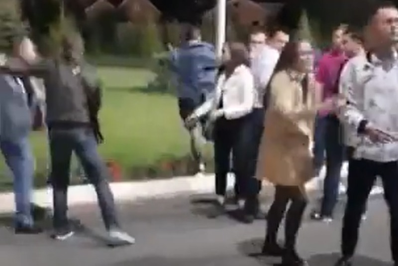 Судя по кадрам видеозаписи, один из участников разборки мог получить травму. Его «уронили» головой на асфальт.