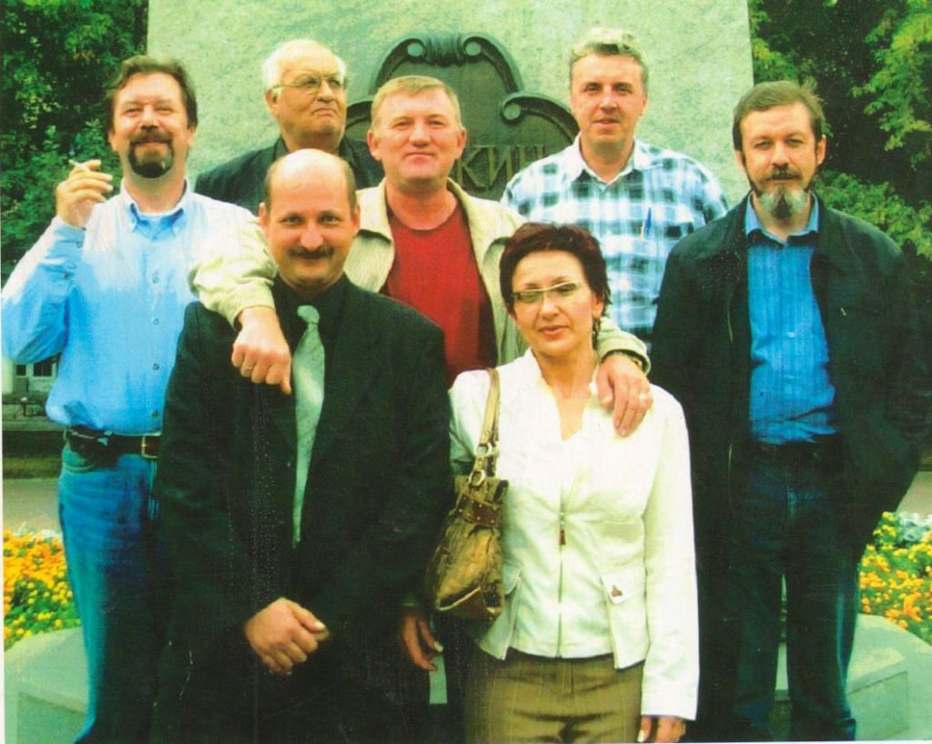 Во втором ряду слева направо: Алексей Журбенко, Лев Бураков, Сергей Салдаев, Сергей Хомутов, Вячеслав Моисеев. В первом ряду: Алексей Хальзунов и Наталья Давыдова (читательница)