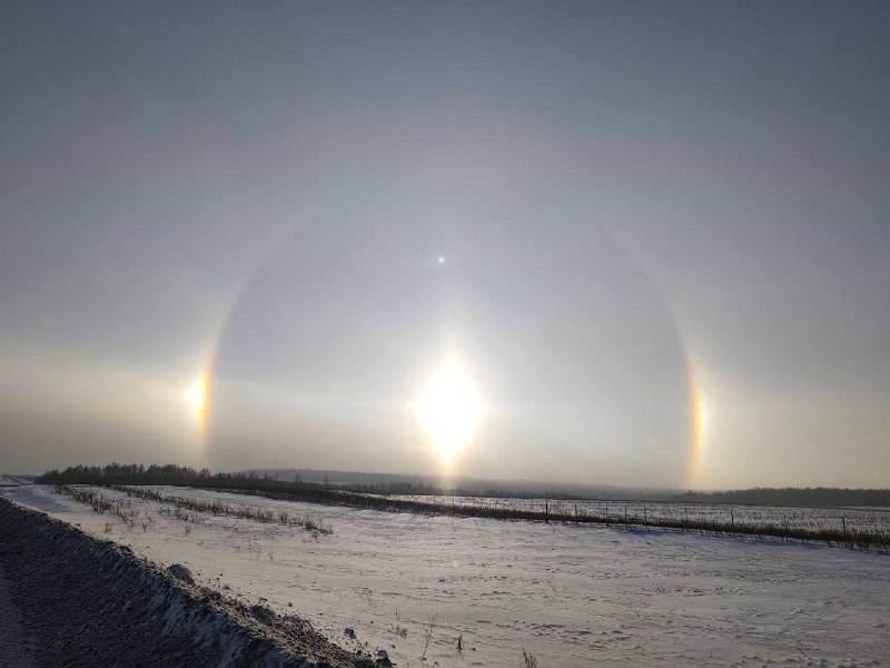 Солнце над Оренбургом обрамила радуга. Впечатляющее оптическое явление — гало наблюдали сегодня, 12 января, жители областного центра.