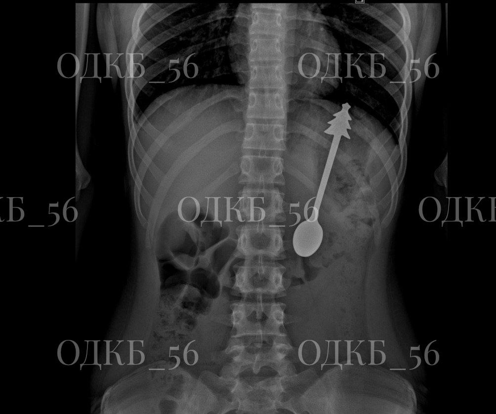 Маленького пациента доставили в больницу на скорой помощи. Диагностика показала, что ребенок проглотил ложку длиной 14 сантиметров.
