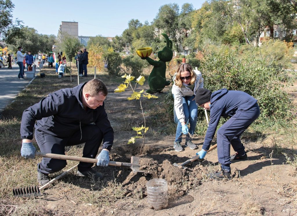 Силами работников Уральской Стали (входит в компанию «Металлоинвест») и других активных жителей города Новотроицк в сквере имени Юрия Гагарина высажена аллея из 75 саженцев.
