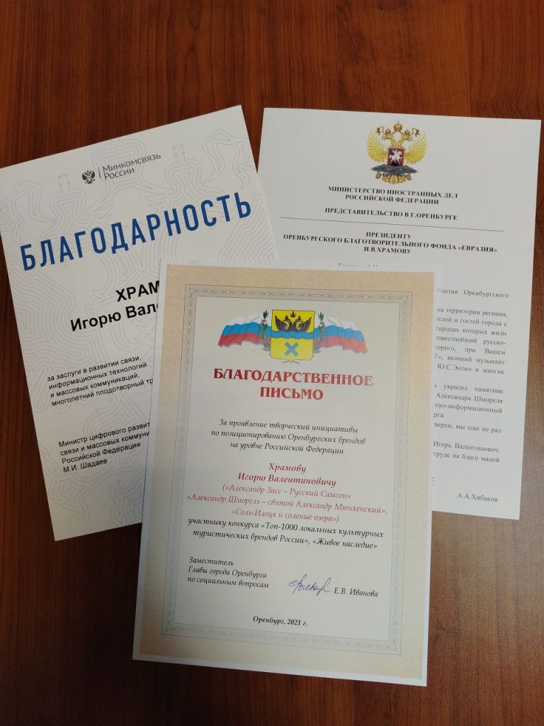 Президент Оренбургского благотворительного фонда «Евразия» Игорь Храмов передал в архив эскизы сценографии мюзикла, либретто мюзикла Марка Розовского «Капитанская дочка».