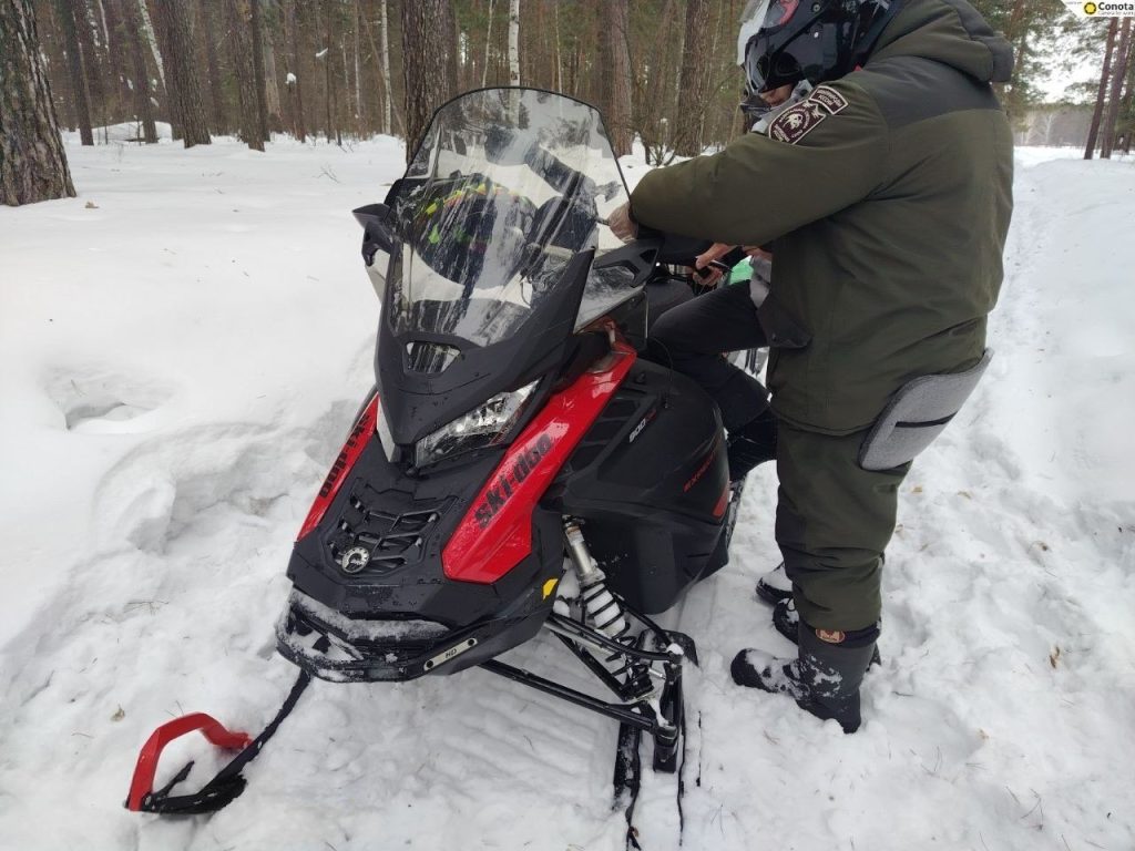 Госинспекторы национального парка «Бузулукский бор» патрулируют территорию на снегоходах и автомобилях.