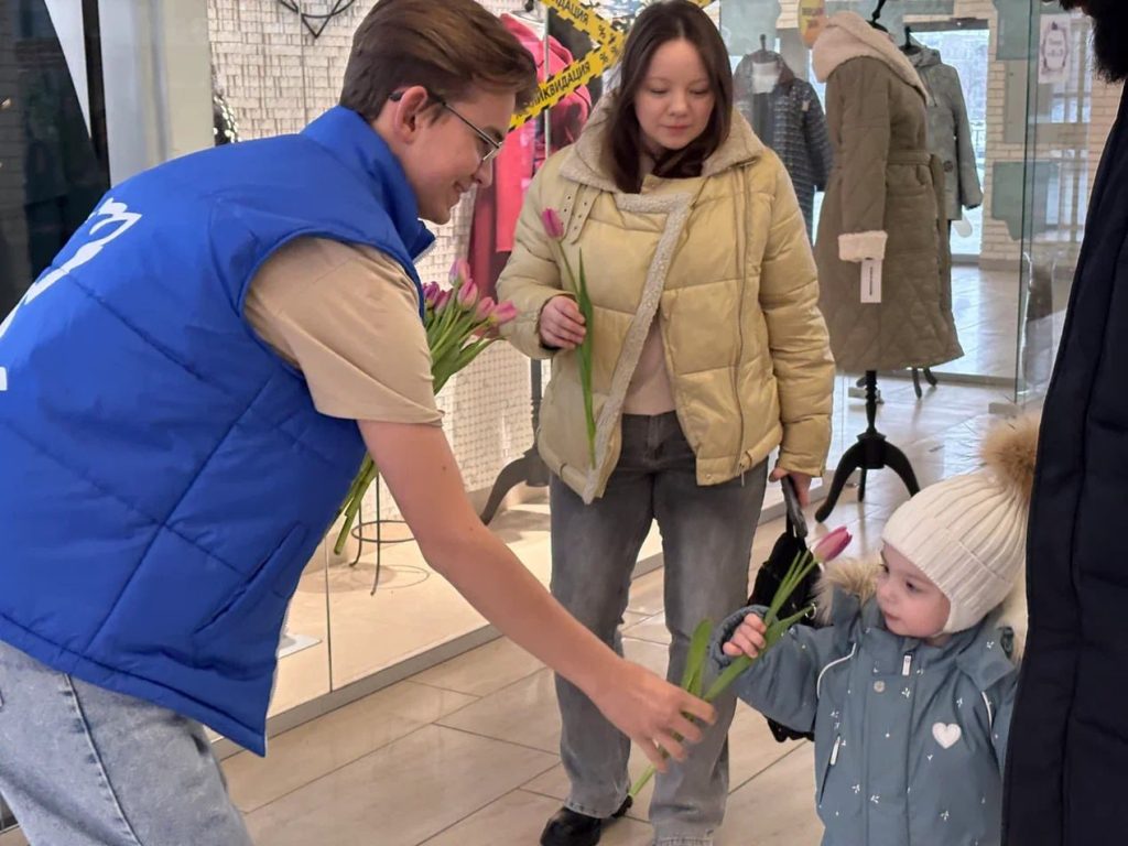 Праздничные пикеты продолжились в крупных торговых центрах. Сотни женщин получили от активистов «Молодой Гвардии Единой России» свой маленький, но очень приятный подарок к 8 Марта.