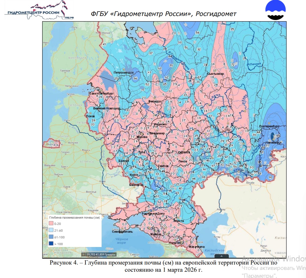 По данным гидрологов на 1 марта 2026 года, почва промерзла слабо, местами земля талая. Глубина промерзания почвы на большей части северо-запада Европейской территории меньше нормы.