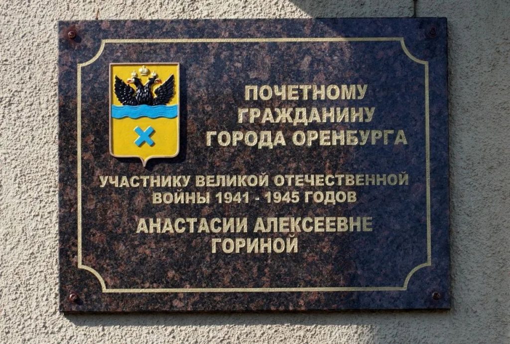 В Оренбурге состоялось открытие памятного знака Почетному гражданину города, участнице Великой Отечественной войны Анастасии Гориной.