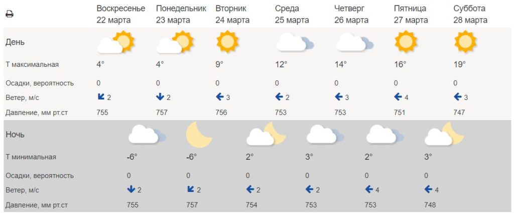 Мартовское солнце с каждым днём будет все больше прогревать воздух. К четвергу в Оренбуржье потеплеет до +14…+16 градусов. А к субботе, 28 марта, метеорологи прогнозируют +19 градусов.