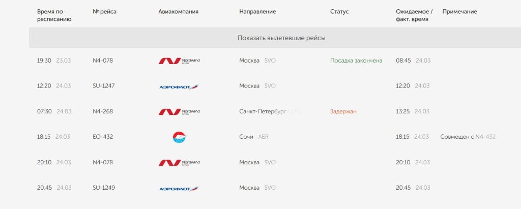 Борт авиакомпании «Нордвинд» в Пулково должен был вылететь в 07.30 утра 24 марта, но был перенесён на 13.25, следует из данных электронного табло. Вчерашний вечерний рейс этого же авиаперевозчика в Шереметьево с 19.30 перенесли на 08.45 утра 24 марта. В настоящее время на самолёт завершена посадка.