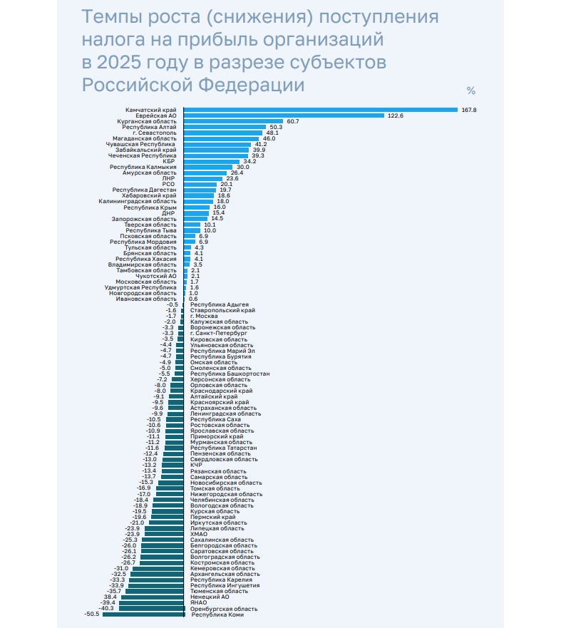 — Так, в Оренбургской, Сахалинской, Тюменской областях, Ненецком и Ямало-Ненецком автономных округах экономика ориентирована на добывающий сектор, вследствие чего снижение обусловлено уменьшением поступлений от предприятий нефтегазового сектора по причине роста затрат и снижения объемов добычи нефти в рамках складывающихся геополитических и макроэкономических условий, а также влияния курсовых разниц в связи с волатильностью курса доллара, — отмечается в отчете Счетной палаты.