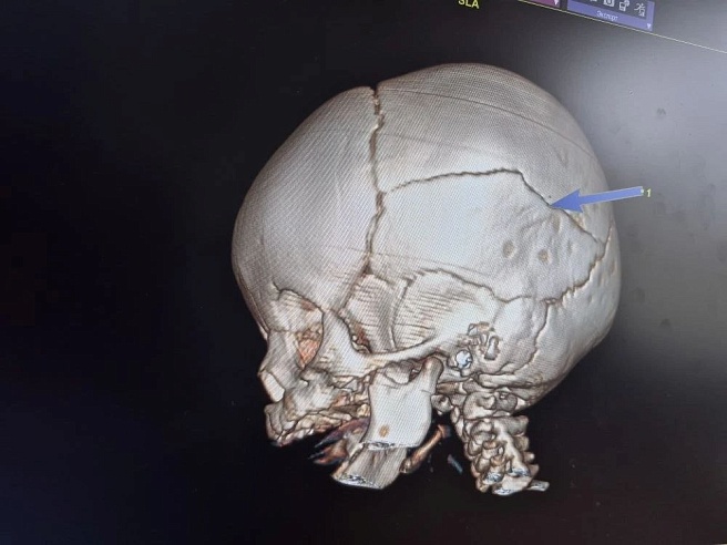 Сначала его поведение не изменилось, но мать заметила небольшую припухлость на голове. Рентген в частном медицинском центре вызвал подозрение на повреждение костей черепа, и пациента экстренно направили в больницу.