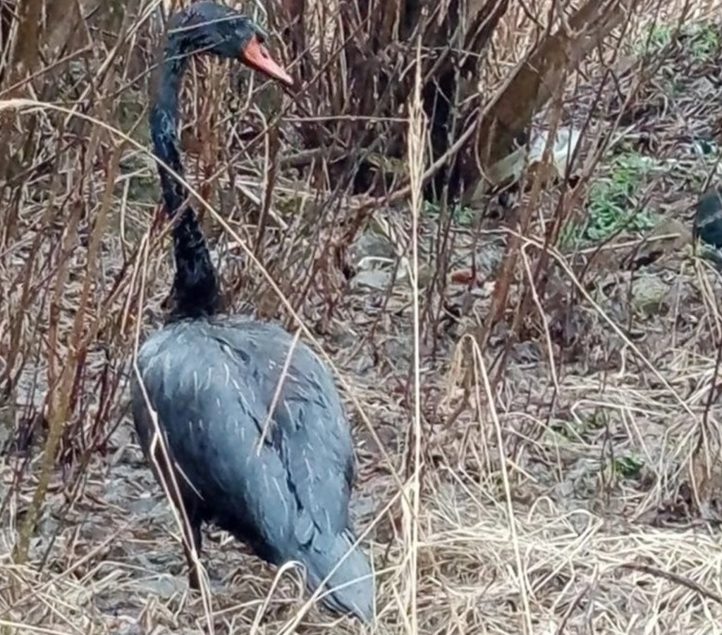 Лебедь увяз в нефтепродуктах на территории промзоне Черниковки около двух недель назад. У птицы очень сильная интоксикация, она уже потеряла глаз, есть проблемы с клювом и печенью.