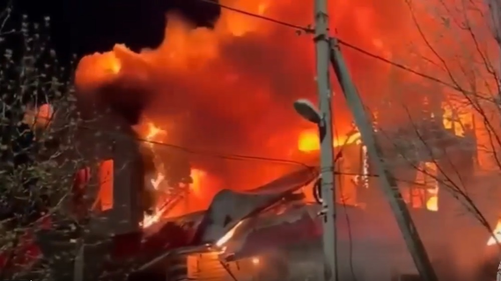 Площадь пожара составила 200 квадратных метров. Предварительной причиной возгорания стало замыкание электропроводки. По факту пожара проводится дознание, информация уточняется.