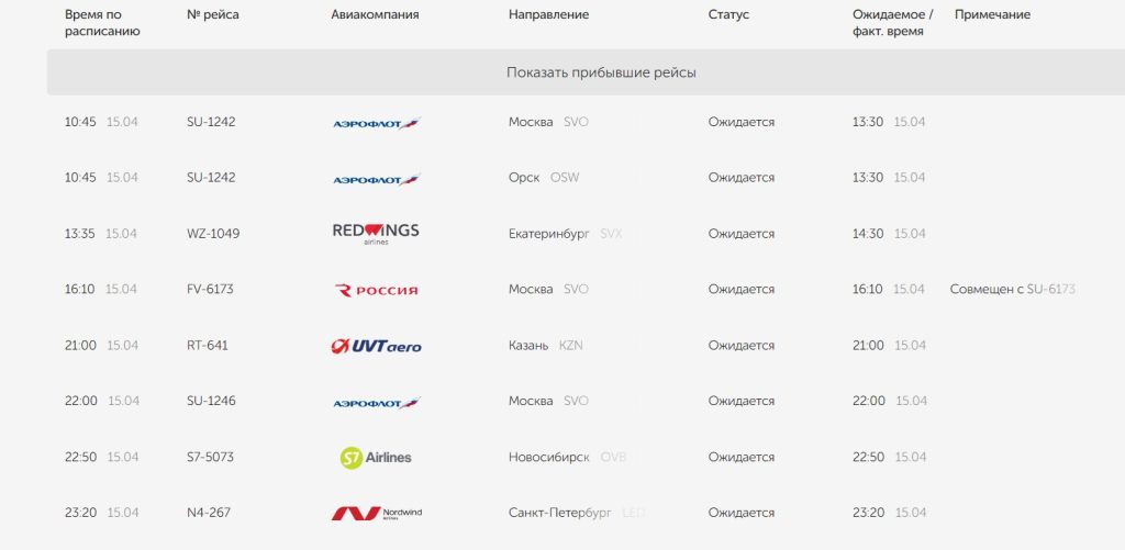 Пассажирам рекомендовано уточнять фактическое время вылета в авиакомпаниях. Актуальная информация о времени вылета размещена на онлайн-табло аэропорта.