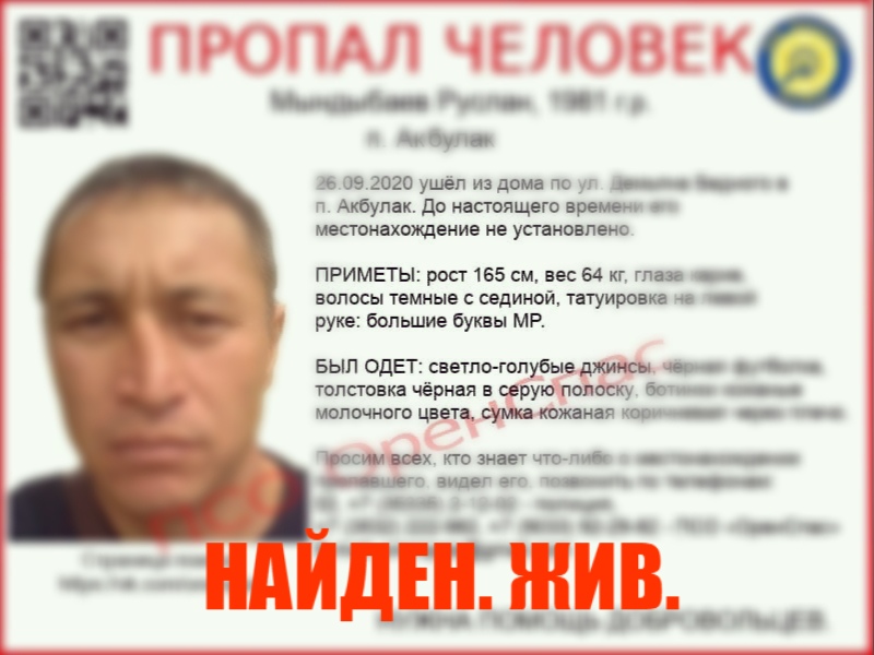 О том, что в Оренбургской области без вести пропавший Руслан Мындыбаев найден живым, «Оренбург Медиа» сообщили в поисково-спасательном отряде «ОренСпас».