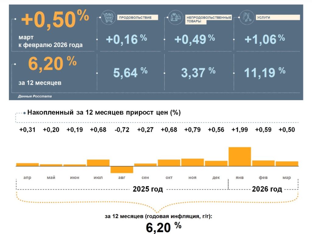 В Оренбургской области в марте 2026 года зафиксировали умеренный рост потребительских цен. По данным Центробанка, месячная инфляция составила 0,5%, а годовой показатель снизился до 6,2%. Несмотря на замедление, регион по-прежнему опережает среднероссийский уровень, который держится на отметке 5,86%.