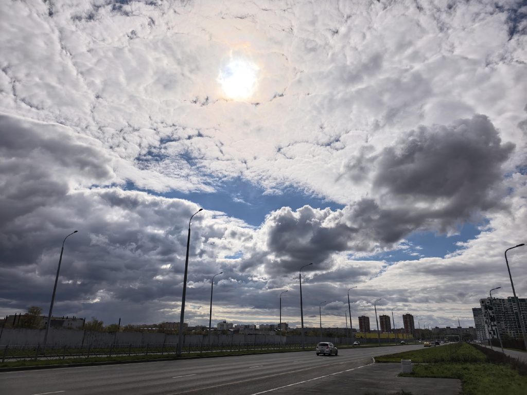 Днем сохранится переменная облачность. Местами, преимущественно в западных районах, пройдет небольшой дождь. Ветер южный, 8…13 м/с. Местами в западных районах порывы будут достигать 18-23 м/с. Температура воздуха +15…+20 °C.