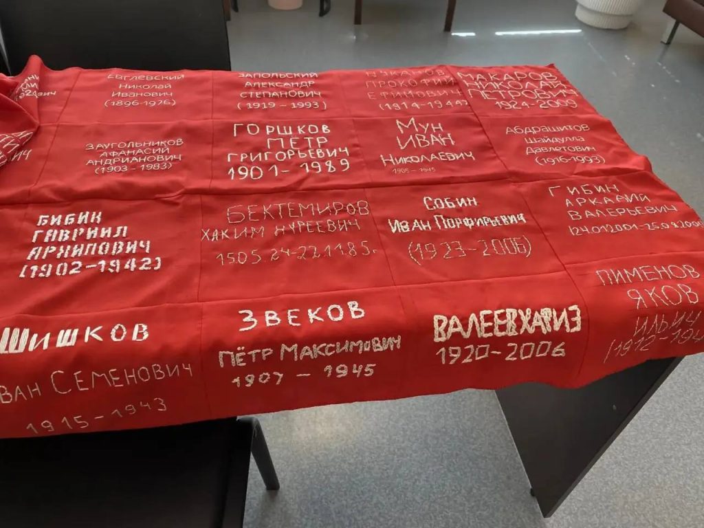 В школе №89 города Оренбурга делают Знамя Памяти. На красной ткани белыми нитками учащиеся вышили имена героев — Великой Отечественной войны, локальных войн, специальной военной операции.
