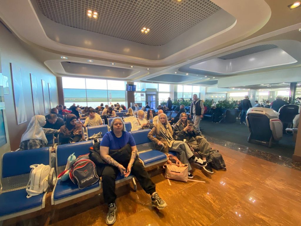 С пассажирами задержанных рейсов работают сотрудники аэропорта и авиакомпаний. Работают медпункт и комната матери и ребенка, установлены дополнительные кулеры, доступен бесплатный вай-фай.