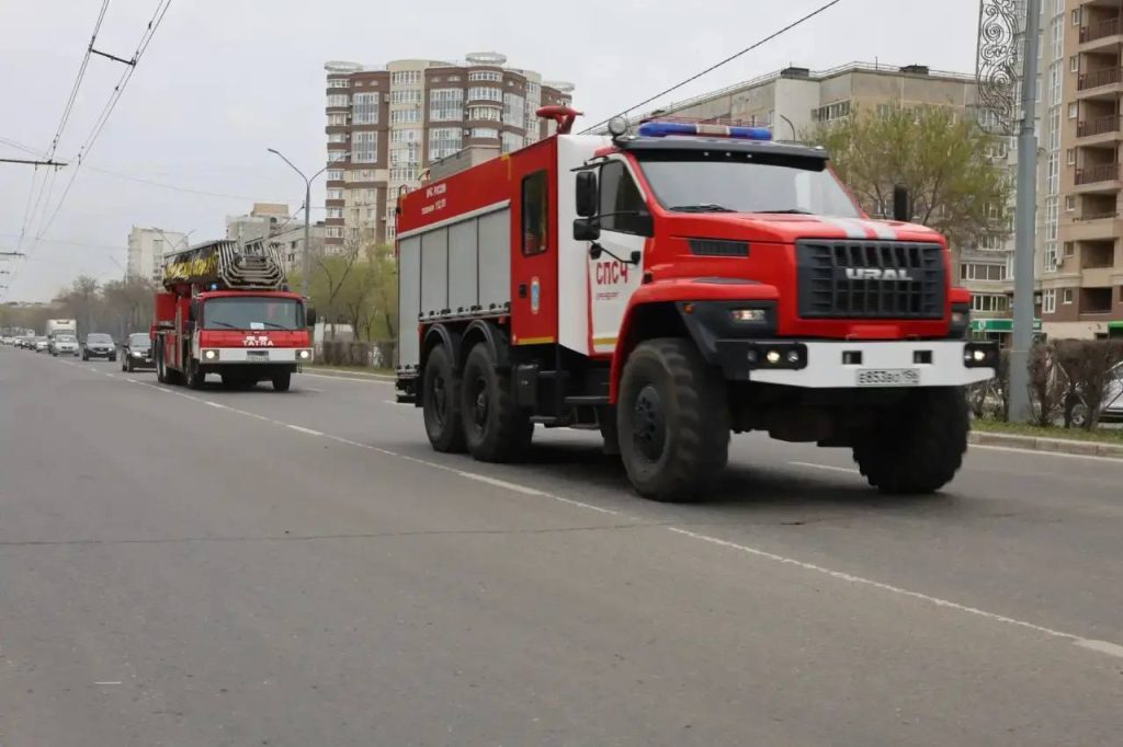 По областному центру проследовала колонна техники для тушения пожаров и спасения жизней. Пожарные цистерны, автолестницы, аварийно-спасательные автомобили украсили город.