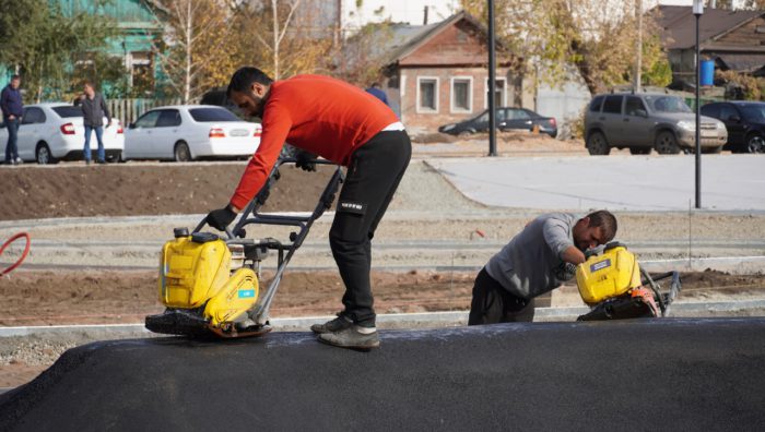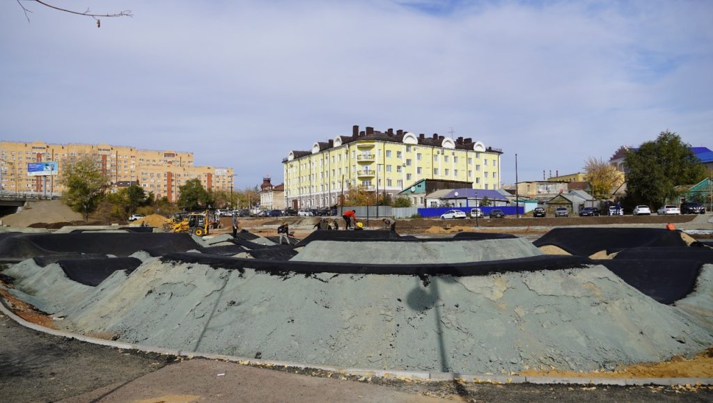 Асфальтовый памп-трек готов к 1 ноября, заявили в мэрии Оренбурга. Строительные работы проводятся на трех разноуровневых площадках, их общая площадь составляет 66 кв м. На верхней площадке уже готовы две баскетбольные площадки.