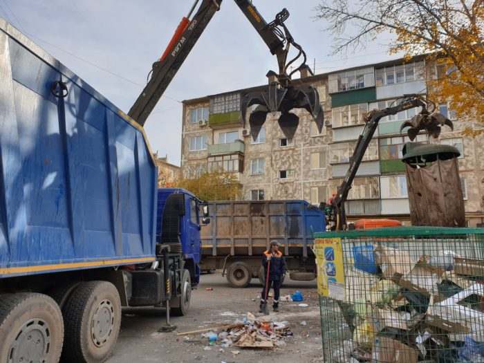 Сегодня в связи с многочисленными обращениями жителей города и в результате переговоров регионального оператора с администрацией города Оренбурга муниципальное предприятие при администрации Южного округа города выделило работников и автомобиль-ломовоз для уборки накопившегося мусора и замены мешков в заглубленных контейнерах.