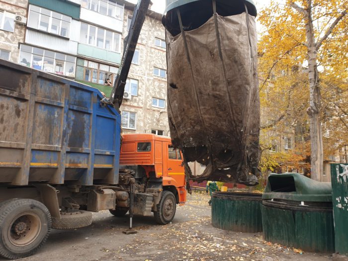 Напомним, что еще в сентябре на данной контейнерной площадке полностью вышли из строя оба контейнера заглубленного типа по причине разрыва мешков и обрыва шнуров фиксации мешка. Вследствие чего вывоз твердых коммунальных отходов из контейнеров, вышедших из строя, специализированным транспортом для этого типа контейнера был невозможен. Регоператор неоднократно снимал с маршрута автомобиль-ломовоз (не предназначен для сбора ТКО из контейнеров заглубленного типа) и направлял в рамках помощи по указанному адресу.