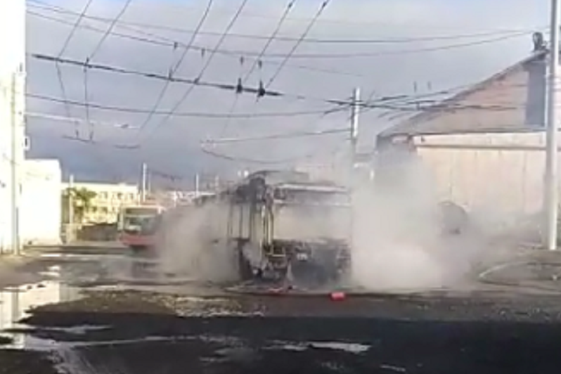 Очевидцы пожара запечатлели происходящее на видео. На записи видно, что троллейбус выгорел полностью.
