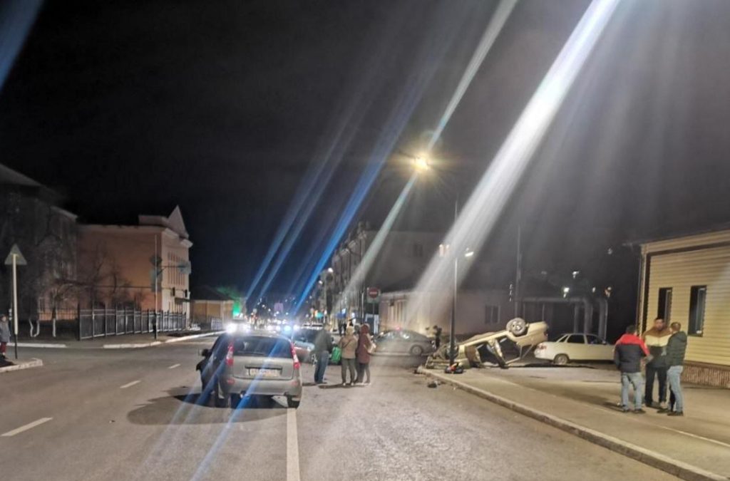 От удара иномарка перевернулась на крышу. Пострадали три человека: водитель и две пассажирки иномарки.