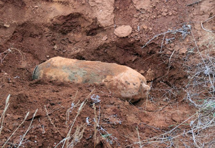 Взрывотехники, обследовав боеприпас, установили, что это 50-килограммовая осколочно-фугасная авиабомба со следами коррозии и поврежденным хвостовым стабилизатором.