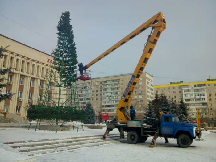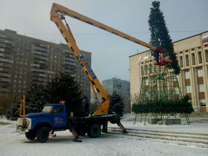 Так, сегодня, 30 ноября, приступили к установке елки у здания Южного округа на улице Чкалова. На металлический каркас с помощью подъемника крепят ветви ели, которые потом украсят огнями. Аналогичная конструкция установлена на пересечении проспекта Победы и улицы Маршала Жукова. Также каркас главного символа Нового года возведен в парке имени 50 СССР.