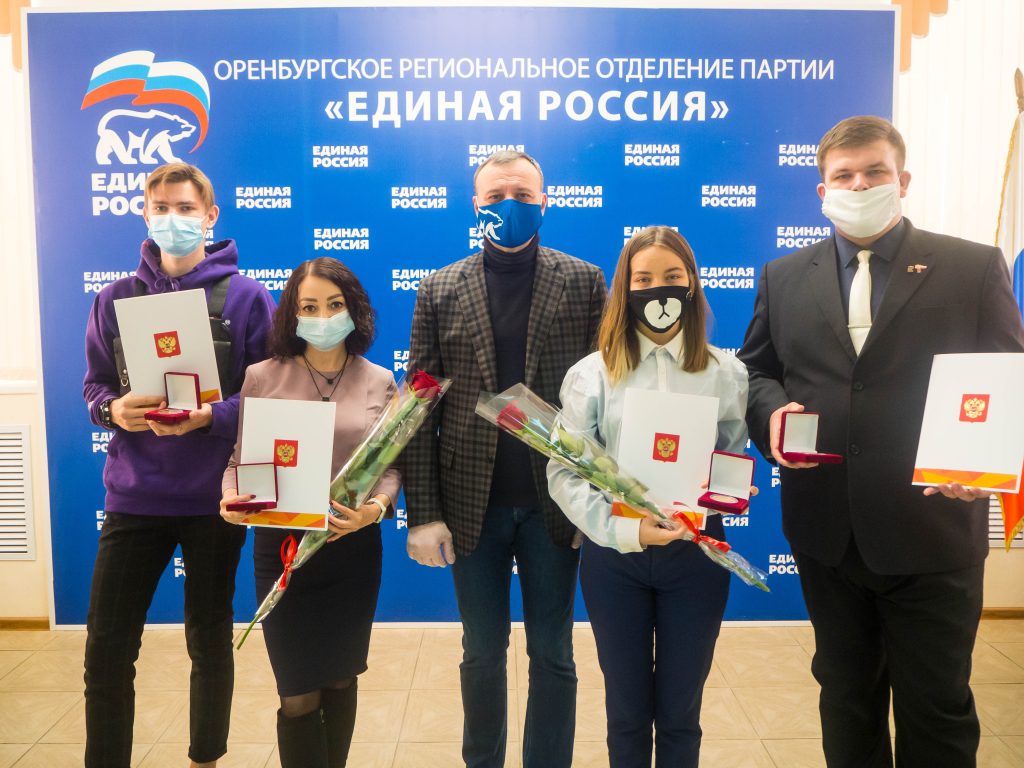 В этот день Секретарь Регионального отделения Партии Олег Димов поздравил волонтеров с праздником. Поздравление началось с награждения президентскими медалями и памятными грамотами добровольцев, участвующих в акции взаимопомощи «МыВместе». В Региональном исполнительном комитете Партии лидер единороссов Оренбуржья вручил награду четырем оренбуржцам – Варваре Тараненко, Эльвире Миграновой, Никите Кропотову и Сергею Баканову.