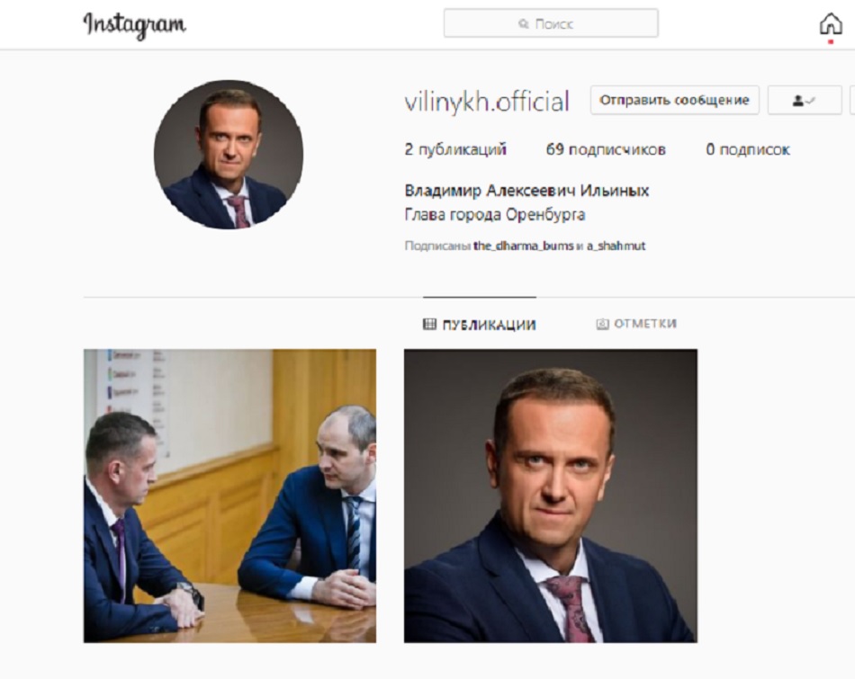 — Владимир Ильиных, Глава города Оренбурга, создал в инстаграме личный официальный акканут. Это единственный официальный аккаунт Владимира Ильиных в социальных сетях, — говорится в сообщении городской администрации.